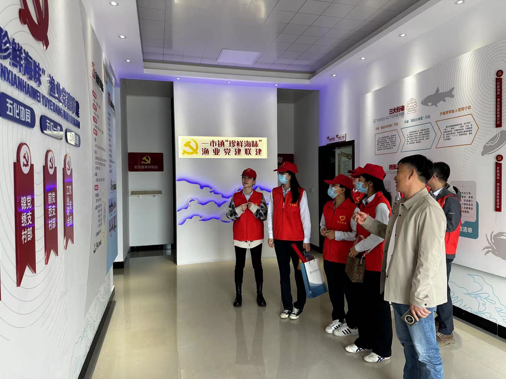 最后,各团员参观了前岙村的青蟹养殖基地,通过村支书的介绍,学习颇具当地特色的“珍味海鲜”渔业党建联盟建设的特色工作和前岙村以“党建与村庄共融发展”为主旨、以“党支部+合作社+水产经济”为架构的特色美丽乡村建设发展经验。